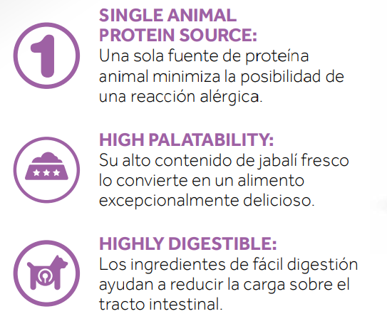 TROVET Plus Unique Protein Wild Boar 300 g es un alimento complementario diseñado para perros y gatos con alergias o intolerancias alimentarias. Su fuente única de proteína, el jabalí, es una opción novedosa y altamente digestible que minimiza el riesgo de reacciones alérgicas.